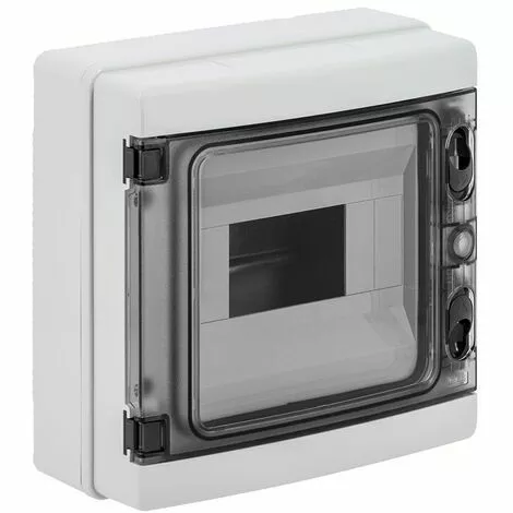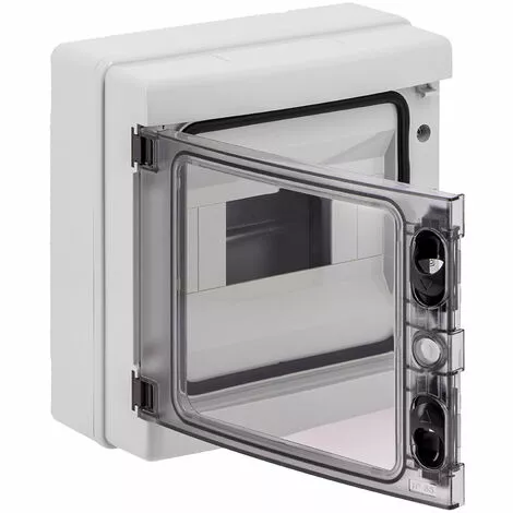 SIMBOXVersion du produit : ConstructionType du cache : ferméIndice de protection IP : IP65Nombre de modules : 8Rail de montage DIN : OuiPlaque de montage : NonCouvercle transparent : OuiNombre de rangées : 1Hauteur : 210 mmLargeur : 215 mmProfondeur : 100 mm
