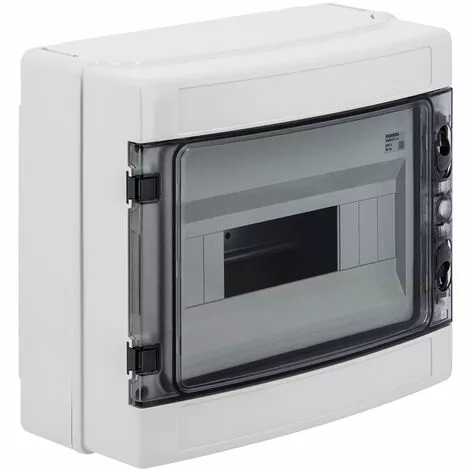 SIMBOXVersion du produit : ConstructionType du cache : ferméIndice de protection IP : IP65Nombre de modules : 12Rail de montage DIN : OuiPlaque de montage : NonCouvercle transparent : OuiNombre de rangées : 1Hauteur : 260 mmLargeur : 298 mmProfondeur : 140 mm