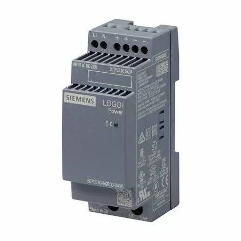 Les mini blocs d’alimentation LOGO! Power dans la conception des modules LOGO! 8 offrent une grande puissance dans les plus petits espaces. Le bon rendement sur toute la plage de charge et la faible perte de puissance au ralenti garantissent un fonctionnement efficace. L’entrée large gamme pour les réseaux monophasés et pour les réseaux à tension continue, ainsi que la réserve de puissance lors de la mise en service de charges capacitives, répondent aux exigences de nombreuses applications. Une application universelle est également possible grâce à la large plage de température et aux nombreuses certifications. Les alimentations fiables avec leur boîtier à gradins plats peuvent être intégrées de manière flexible, par exemple dans les tableaux de distribution. Quel que soit le secteur, quelle que soit son exigence, Siemens propose des alimentations fiables et efficaces pour chaque système.