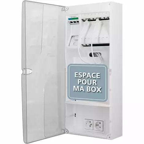 - Coffret prêt pour le raccordement national au très haut débit par fibre optique (FTTH, Fiber To The Home, fibre jusqu’à l’abonné).