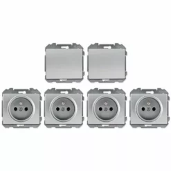 LOT De 3 Prises 2P+T Anthracite Delta Iris + Plaques Métal Texturé Alu Noir – SIEMENS – SIEMENS
