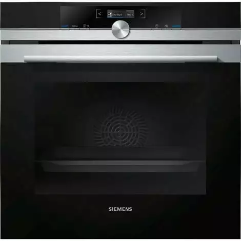 SIEMENS – Four multifonction pyrolyse inox 71 l – Classe A+ – Supports d’enfournement et tôle a pâtisserie résistants a la pyrolyse – Ecran TFT tactile 2,8′ avec texte clair – Monobouton central – 13 modes de cuisson dont air pulsé 4D – Porte froide 4 vitres – Préconisation et affichage de la température – Programmes