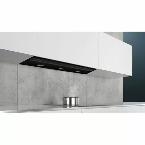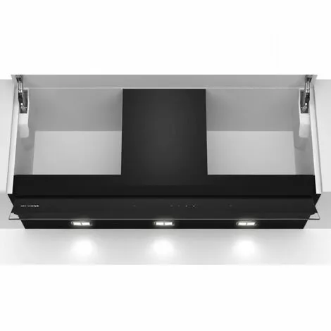 HOTTE BOX INTEGREE 90CM 749/H B NOIR – Classe énergie B – Nombre de vitesses: 3 puissances + intensif – Puissance max. mode normal 459,6 m3/h – position intensif 749,3 m3/h – Niveau sonore min/max. mode normal 50 DB/63 DB – position intensif 73 DB