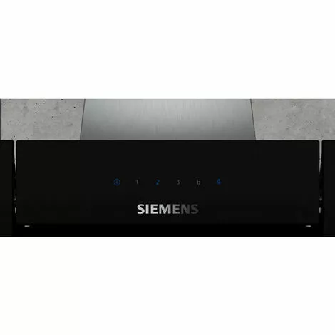 Hotte décorative inclinée iQ300 Siemens LC87KEM60 avec éclairage LED : visibilité et atmosphère idéales pour cuisiner. Extrêmement silencieuse lors de l’utilisation. Grâce au touchControl le niveau de puissance et l’éclairage LED peuvent être sélectionnés directement. Vitesse intensive avec retour automatique à la vitesse normale.