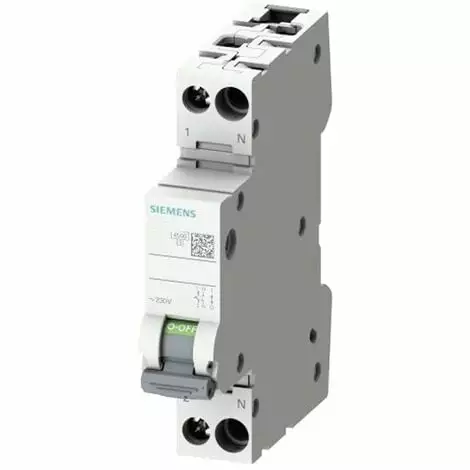 Interrupteur magnétothermique Siemens 10A Type de Pôles 1P+N pouvoir de coupure: 4.5 KA Courbe de Type Interrupteur magnétothermique C, 1 Module, Système d’alimentation (Phases): – la Phase (2 fils), Degré de Protection: IP20,Tension nominale Vac: 230 V.