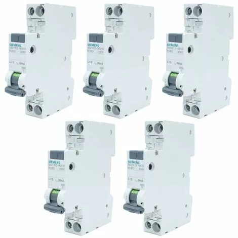 Kit de 5 pièces d’interrupteurs magnétothermiques différentiels compacts Siemens, avec les caractéristiques suivantes