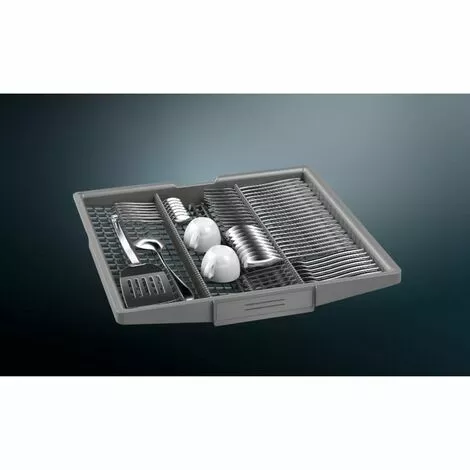 Lave-vaisselle Siemens SN63HX36VE.Le tiroir à couverts vario offre un espace de rangement supplémentaire. Grâce à son design spécial, il accueille non seulement les couverts, mais aussi les louches, les couverts à salade ou les petites tasses à café. Le panier du bas, qui ne contient donc plus de panier à couverts, peut désormais acceuillir 14 ustensiles de taille standard en plus.Consommation d’énergie réduite à performances égales, programmes courts avec des résultats optimaux et fonctionnement silencieux ? tout ceci ne pose aucun problème au moteur iQdrive. Et, cerise sur le gâteau, il ne craint pas l’usure.L’option zone Intensive augmente la pression du jet dans le panier inférieur pour éliminer les saletés les plus tenaces, tandis que le programme du panier supérieur ne change pas et continue de nettoyer en douceur pour une vaisselle délicate.Le panier supérieur comporte 3 étagères rabattables et séparables, ainsi que 2 rangées de picots rabattables, et le panier inférieur 4 rangées de picots rabattables. Ce qui offre plus de place pour le rangement. Les paniers sont en outre munis de poignées pour faciliter leur manipulation.La tablette de lavage est éjectée du compartiment à produit et tombe directement dans un petit collecteur situé à l’avant du panier supérieur. Un jet d’eau ciblé dissout la tablette rapidement et de manière contrôlée. Le produit de nettoyage se répand uniformément dans l’ensemble du lave-vaisselle pour un résultat optimal.