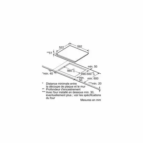 Dim. encastrement H x L x P (cm) : 5.1 x 56 x 49-50