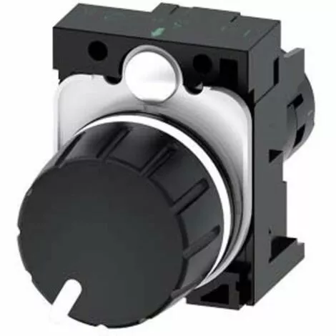 Potentiomètre, compact, 22 mm, rond, plastique, noir, 10k Ohm, avec support, borne à vis.