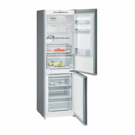 Réfrigérateur combiné iQ300 Siemens KG36NVIEC avec compartiment hyperFresh et noFrost. Conservez vos aliments de manière optimale et finie la corvée du dégivrage. noFrost : la corvée du dégivrage, c’est terminé. Moins de nettoyage avec antiFingerprint. Spot central et colonne latérale de LED pour éclairer chaque coin de votre réfrigérateur. freshSense : la garantie de préserver plus longtemps la fraîcheur des aliments.