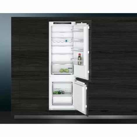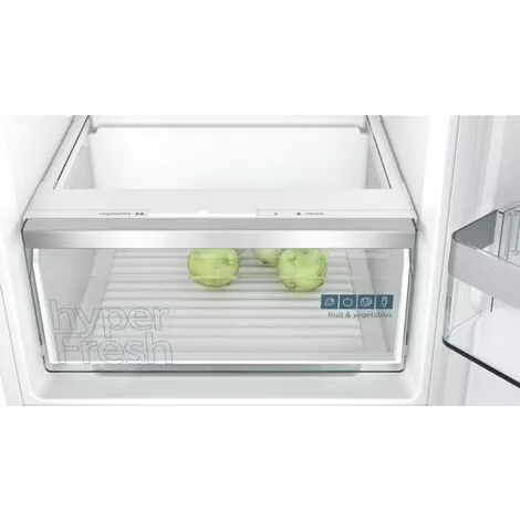 Réfrigérateur combiné intégrable IQ300 SIEMENS KI87VVFE1 avec le système hyper fresh pour garder vos fruits et légumes plus longtemps. Technologie lowFrost : dégivrage plus rapide Répartition parfaite du froid à tous les niveaux : le système autoAirflow Fruits et légumes restent fraîs plus longtemps dans le tiroir hyperFresh, grâce au réglage d’humidité. La bigBox offre un très grand espace de rangement, pratique, afin de congeler des denrées de taille importante Avec le bouton superFreezing, rabaissez plus rapidement la température afin de congeler encore plus rapidement la nourriture nouvellement ajoutée.