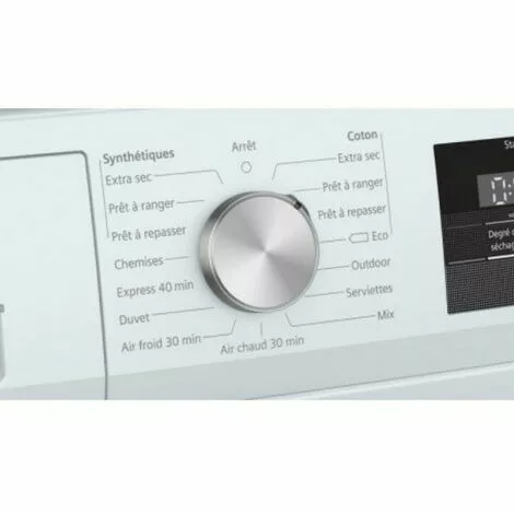 Sèche-linge pompe à chaleur avec condenseur iQ300 Siemens WT45H000FF économique et efficace : classe énergétique A+.Classe d’efficacité énergétique A+ : économique sur une échelle allant de A+++ à D.Technologie autoDry : cycles contrôlés par des capteurs intelligents pour un séchage en douceur et précis.Programme Outdoor spécial pour un séchage en douceur des microfibres et textiles sport.Programme Express : 2Kg de linge séchés en 40 minutes.Filtre easyClean pour un nettoyage facile du filtre condenseur.