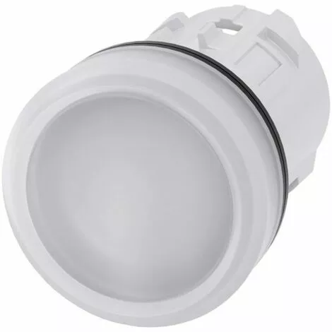 Indicator lights, 22 mm, round, plastic, white, lens, smooth Indicator lights SIRIUS ACT for signaling switching states or faults in systems with high luminosity, thanks to energy-efficient LED technology. Under the brand name SIRIUS ACT, Siemens offers a unique portfolio of pushbuttons and signaling devices with global product approvals in four modern design lines of rugged genuine metal and high-grade plastic. An innovative snap-on concept makes the task of installing a unit so easy that it can be done with one hand and without any special tools. Groove-free holes are adequate as mounting holes since full twist prevention is already integrated. Thanks to the high degree of protection throughout, the rugged devices are suitable for use in industry and outdoors. Even cleaning with a high-pressure jet is possible. Neither dust, oils, nor caustic solutions can interfere with reliable operation. As well as standard wiring, the devices can also be connected to the controller via PROFINET, AS-Interface or IO-Link. Doing so will help you to reduce wiring time and effort, minimize error sources and have more flexibility. The graphical Online Configurator provides convenient support when selecting and ordering individual devices, enclosures and labels. Extensive documentation (e.g. manual, 3D data, terminal diagram) is available. Versions available: Several colors, different voltage variants. Note: Single device, please order holders and modules separately. SIRIUS ACT – Performance in action for control and signalling. Simply mounted, simply strong, simply perfect.