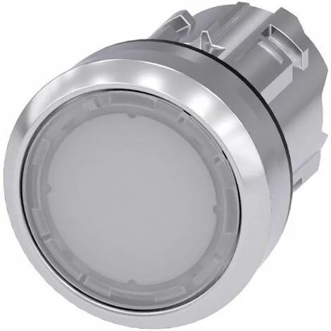 Illuminated pushbutton, 22 mm, round, metal, shiny, white, pushbutton, flat, momentary contact type Illuminated pushbuttons SIRIUS ACT for switching and controlling electrical loads. Under the brand name SIRIUS ACT, Siemens offers a unique portfolio of pushbuttons and signaling devices with global product approvals in four modern design lines of rugged genuine metal and high-grade plastic. An innovative snap-on concept makes the task of installing a unit so easy that it can be done with one hand and without any special tools. Groove-free holes are adequate as mounting holes since full twist prevention is already integrated. Thanks to the high degree of protection throughout, the rugged devices are suitable for use in industry and outdoors. Even cleaning with a high-pressure jet is possible. Neither dust, oils, nor caustic solutions can interfere with reliable operation. As well as standard wiring, the devices can also be connected to the controller via PROFINET, AS-Interface or IO-Link. Doing so will help you to reduce wiring time and effort, minimize error sources and have more flexibility. The graphical Online Configurator provides convenient support when selecting and ordering individual devices, enclosures and labels. Extensive documentation (e.g. manual, 3D data, terminal diagram) is available. Versions available: Several colors, illuminated/non-illuminated, with/without inscription, latching/momentary contact operation, various button and front ring heights. Note: Single device, please order holders and modules separately. SIRIUS ACT – Performance in action for control and signalling. Simply mounted, simply strong, simply perfect.