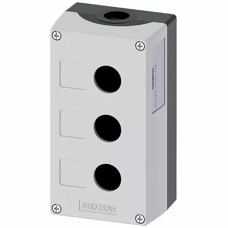 BoĂ®tier pour appareils de commande, 22 mm, rond, matĂ©riau du boĂ®tier en plastique, partie supĂ©rieure du boĂ®tier gris, 3 postes de commande plastique, puits pour panneaux, sans boĂ®tier SIRIUS ACT pour le montage des appareils de commande et de signalisation 22,5 mm en cas de disposition sĂ©parĂ©e des unitĂ©s de commande et des armoires de commande. Sous la marque SIRIUS ACT, Siemens propose un portefeuille unique d’appareils de commande et de signalisation avec des homologations de produits dans le monde entier, dans quatre sĂ©ries de design modernes en mĂ©tal vĂ©ritable robuste et en plastique de haute qualitĂ©. Le concept de fixation innovant simplifie le montage jusqu’Ă ce qu’une seule main et aucun outil spĂ©cial ne soit nĂ©cessaire pour cela. Comme trous de montage, les trous sont suffisants car une protection anti-torsion Ă 100% est dĂ©jĂ intĂ©grĂ©e. Grâce Ă son degrĂ© de protection Ă©levĂ©, les appareils robustes sont adaptĂ©s Ă l’industrie et conviennent Ă une utilisation en extĂ©rieur. MĂŞme le nettoyage avec jet haute pression est possible. Ni la poussière, ni les huiles, ni les alcalis agressifs ne peuvent perturber le fonctionnement fiable. En plus du câblage standard, les appareils peuvent Ă©galement ĂŞtre reliĂ©s Ă la commande via PROFINET, AS-interface ou IO-Link. Vous rĂ©duisez ainsi votre câblage, minimisez les sources d’erreurs et gagnez plus de flexibilitĂ©. Le configurateur graphique en ligne vous permet de sĂ©lectionner et de commander des appareils, boĂ®tiers et Ă©tiquettes. Une documentation complète (par ex. manuel, donnĂ©es 3D, schĂ©ma de connexion) est disponible. Versions disponibles : jaune/gris, plastique/mĂ©tal, 1-6 emplacements de commande, boĂ®tier vide/prééquipement, avec raccordement AS-interface au choix. SIRIUS ACT – performance en action lors de la commande et du rapport. Simple Ă monter, simple Ă fort, tout simplement parfait. Ce texte a Ă©tĂ© traduit par une machine.