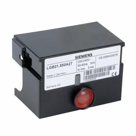 Coffrets de sécurité LGB22 330B27 pour la surveillance de brûleurs à gaz ou gaz/fioul à une ou deux allures, de faible à moyenne puissance (jusqu’à 350 kW), avec ou sans ventilateur, à fonctionnement intermittent. Pré-ventilation : 26 secondes Pré-allumage : 25 secondes Sécurité : 5 secondes Nombre allures : 2 On l’appelle aussi : carte électronique chaudière, programmateur, relais, bloc actif, boitier de contrôle, boîtier de contrôle, coffret de sécurité