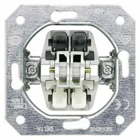 Insert pour appareil à bouton Delta, bouton-poussoir double UP, commutateur Delta 2S 10A 250V et prises de courant – design et qualité dans la perfection de Siemens. Notre gamme de produits complète vous offre, grâce à sa diversité de formes et de couleurs stylées, une multitude de possibilités de conception individuelles qui mettent en valeur l’esthétique de chaque pièce. Nous pouvons également garantir la haute qualité et la longévité de nos interrupteurs Delta et de nos prises électriques grâce à notre grande compétence en matière de fabrication, de la pièce individuelle au produit fini. Les inserts Siemens se distinguent principalement par : 1. Interrupteur dans les variantes de commutateurs OFF, de commutation et de croisement ainsi que des boutons de différentes versions. 2. Insert d’appareil avec vis universelle pour tournevis Torx T10 et tournevis plat. 3. La compensation de brossage de 3 mm assure une fonction fiable même dans des conditions de paroi extrêmes. 4. De nombreuses versions telles que la commande de stores, le message de mouvement, la minuterie et la régulation de la température ambiante sont disponibles. www.siemens.de/delta. Siemens propose une gamme complète d’appareils de protection, de commutation, de mesure et de surveillance, de systèmes de distribution ainsi que de commutateurs et de prises électriques pour une infrastructure électrique sûre et efficace dans les bâtiments et l’industrie. Ce texte a été traduit par une machine.