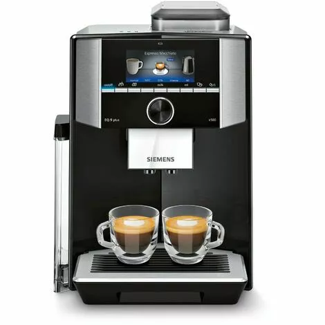 Siemens EQ.9 plus s500. Type de produit: Machine à café filtre, Type de cafetière: Entièrement automatique, Capacité du réservoir d’eau: 2,3 L, Type d’entrée à café: Café en grains, Café moulu, Réservoir de café: Tasse, Capacité en tasses: 2 tasses, Broyeur intégré. Type d’écran: TFT. Puissance: 1500 W. Couleur du produit: Noir, Acier inoxydable