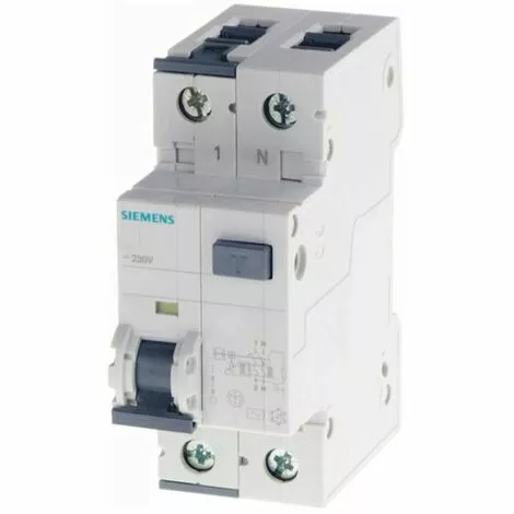 Disjoncteur magnétothermique différentiel Siemens, 2 modules, montage DIN (universel pour tout tableau du marché), pôles 1P+N, 16 ampères, pouvoir de coupure 4,5kA, tension 230/240 Vac, courant différentiel Idn 300mA, type AC, courbe de déclenchement C.