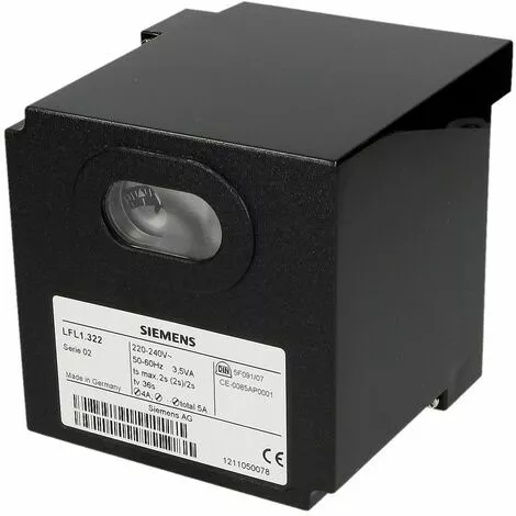 Le relais LFL1.322 de Siemens convient aux brûleurs à air soufflé gaz, fioul et combi de moyenne et grande puissance de chauffe, et également aux brûleurs à plusieures allures ou modulants avec un fonctionnement intermittent avec contrôle de la pression d’air pour la commande de volet d’air contrôlée.Tension du réseau/fréquence du réseau:220 V – 15 % … 240 V + 10 % 50 … 60 Hz +/- 6%