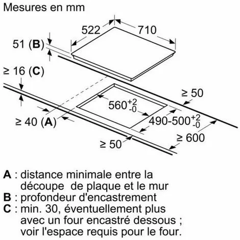 Dimensions Encastrement (LxHxP) : 56 x 5,1 x 49 cm.