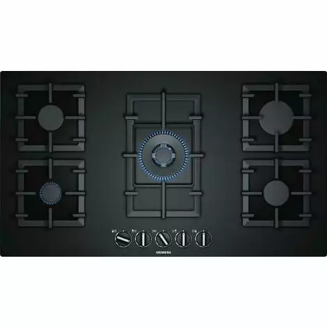 Table gaz iQ500 Siemens EP9A6QB90 avec la technologie stepFlame pour un contrôle précis de la flamme en 9 niveaux de puissance. Technologie StepFlame : contrôle précis de la chaleur en 9 niveaux de puissance. Wok d’une puissance de 4,0 kW, idéal pour la réalisation d’une large variété de plat, même en grande quantité. Conception de fabrication supérieure avec possibilité d’installation de la table à fleur ou semie-fleur du plan de travail. Extrêmement résistant à la chaleur et facile à nettoyer – surface moderne en céramique. Haute qualité des matériaux et de fabrication – supports en fonte.Puissance :5 brûleurs.Avant gauche : Brûleur économique 1 kW.Arrière gauche : Brûleur normal 1.75 kW.Au centre : Wok 4 kW.Arrière droit : Brûleur grande puissance 3 kW.Avant droit : Brûleur normal 1.75 kW.Confort/Sécurité :Technologie stepFlame : 9 niveaux de puissance réglables avec précision.Allumage électrique une main.Sécurité gaz par thermocouple.Nettoyage facilité.Supports individuels en fonte.