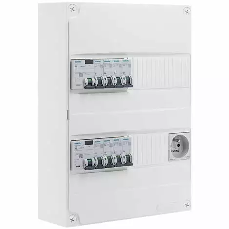 Tableau électrique pré-équipé 2 rangées 26 modules avec 8 disjoncteurs, 2 interrupteurs différentiels et 1 prise 2P + T. Pour la protection des personnes et des circuits. Pour logements < 35 m² Description du produit :