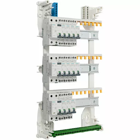Description produit : Tableau électrique 3 rangées pré-équipé. Pour montage en GTL (gaine technique de logement) ou en saillie. Tableau électrique prééquipé d’un interrupteur différentiel 30mA 40A type A + 1 interrupteur différentiel 30mA 40A type AC + 1 interrupteur différentiel 30mA 63A type AC + 2 disjoncteur 10A + 4 disjoncteurs 16A + 4 disjoncteurs 20A + 1 disjoncteur 32A Indice de protection : IP30 Résistance aux chocs : IK05 Dimensions : hauteur : 475 mm Largeur : 250 mm Profondeur : 97 mm Composition du tableau prééquipé 3 rangées SIEMENS :