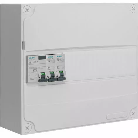 Description produit : Tableau 1 rangée pré-équipé. Pour montage en GTL (gaine technique de logement) ou en saillie. Tableau 1 rangée pré-équipé d’un interrupteur différentiel 30mA 40A type AC + 1 disjoncteur 10A + 1 disjoncteur 16A Dimensions : Hauteur : 225 mm Largeur : 250 mm Profondeur : 97 mm Composition du tableau pré-équipé 1 rangée SIEMENS :